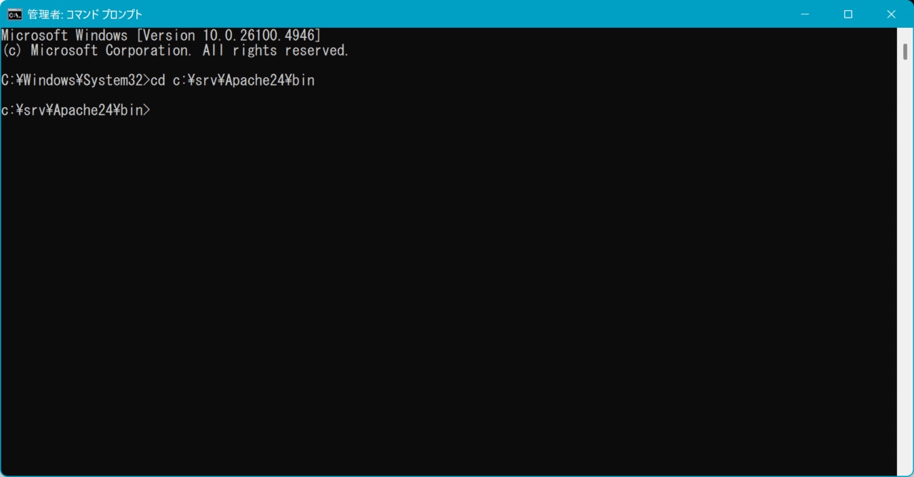 「Apache24/bin/httpd.exe」があるフォルダまで移動