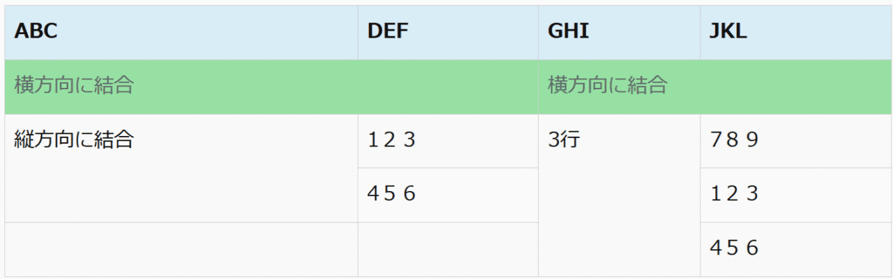 | 縦方向に結合 | 123 | 縦に3行結合 | 789 |