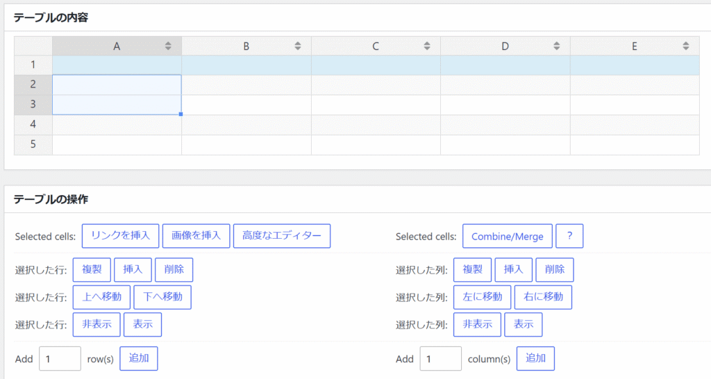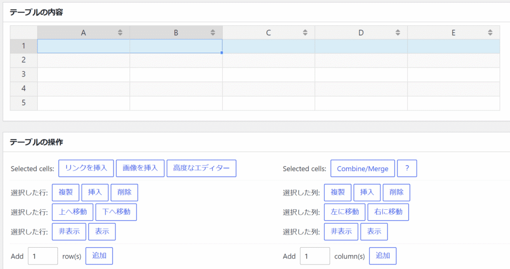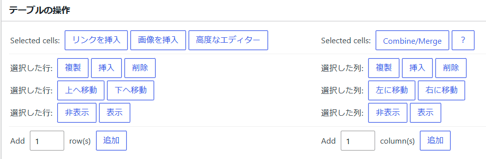 各セルを選択した状態で上記のボタンをクリックして、追加、削除、移動等ができます