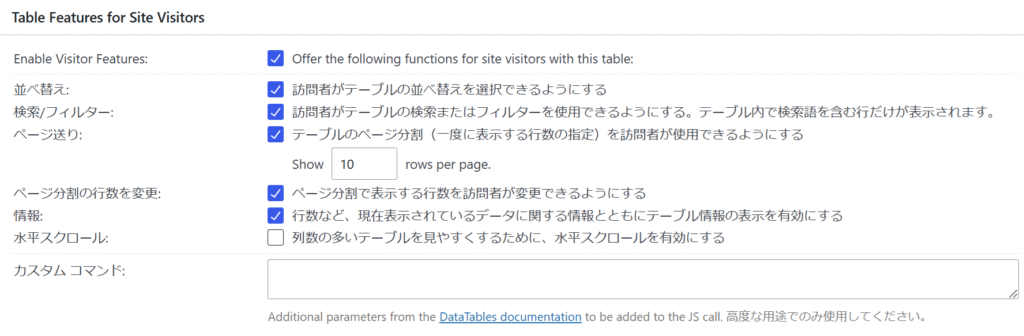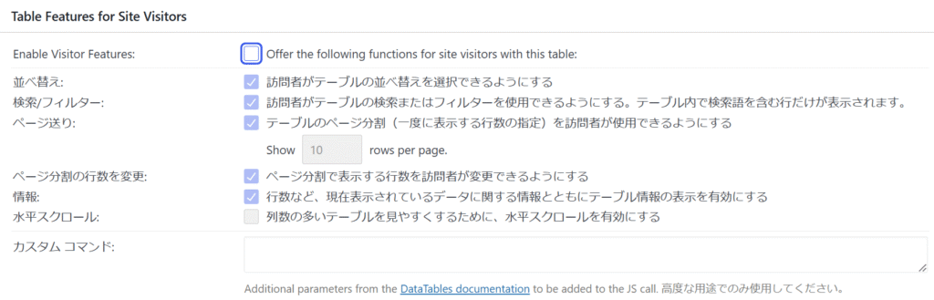 表示されたページの下部にある「Table Featurs for Site Visitors」のチェックを外す