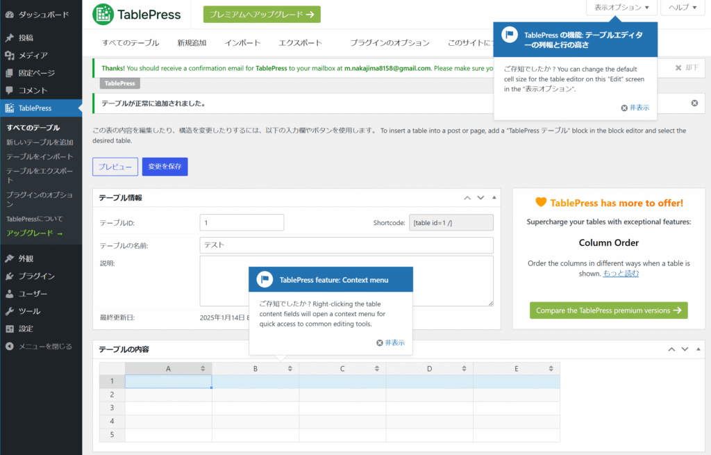 以上長くなりましたが、TablePressの設置方法でした。