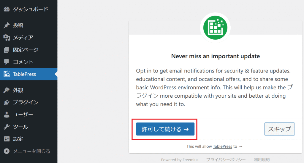 TablePressをインストール