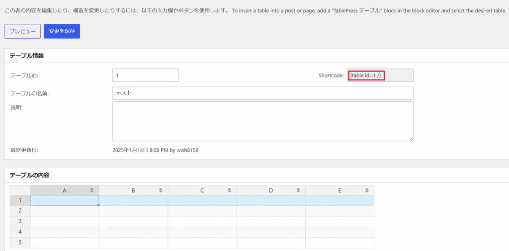 複数のテーブルを作った場合、それぞれここのショートコードを利用します
